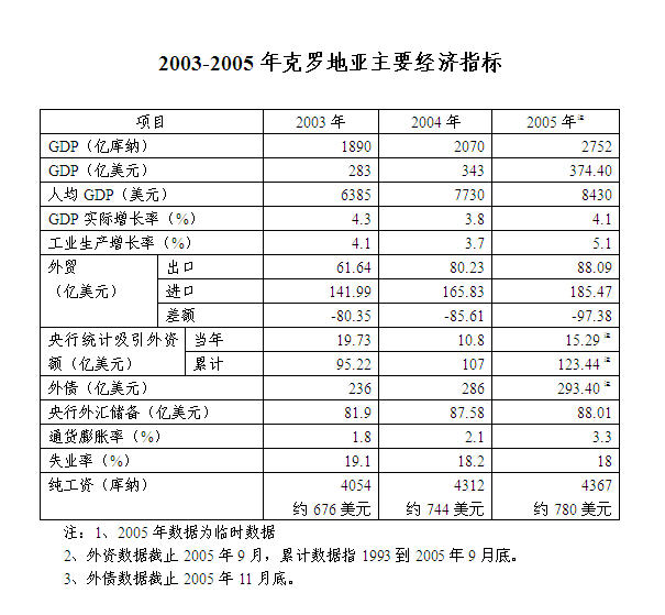 2003-2005年克罗地亚主要经济指标
